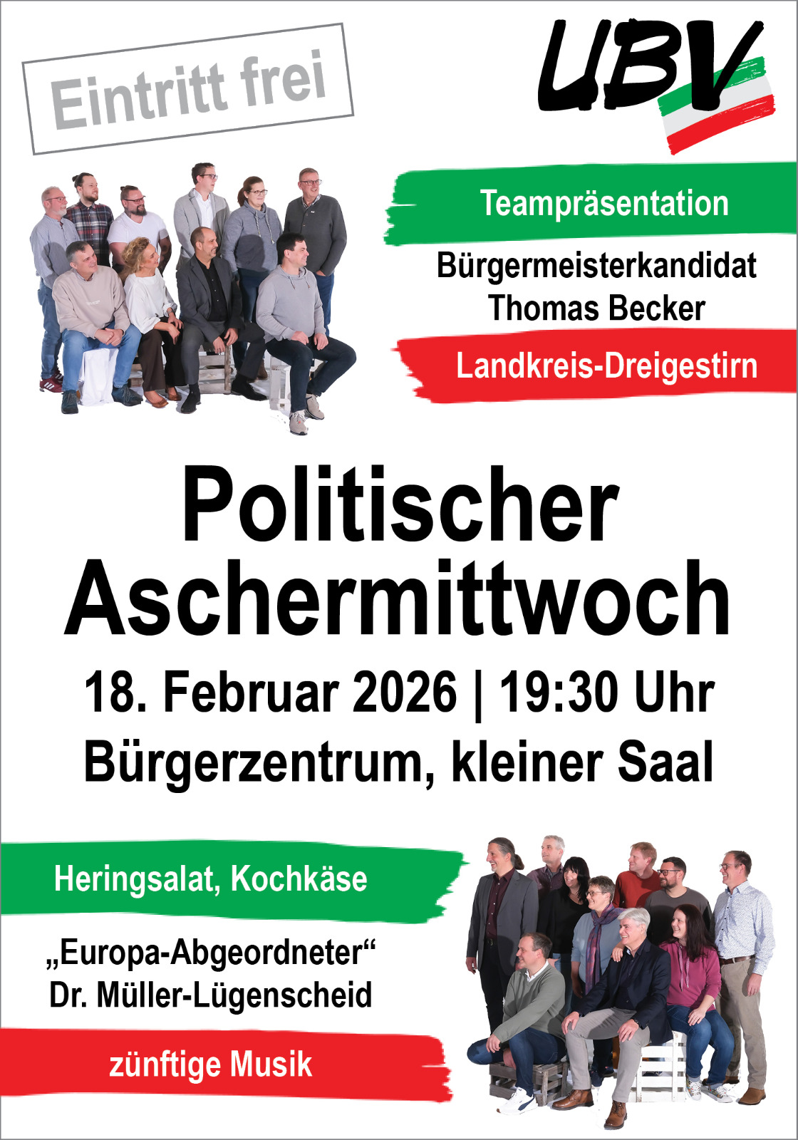 Am 18.02.2026 laden wir Sie ab 19.30 Uhr zu unserem politischen Aschermittwoch in den kleinen Saal des Bürgerzentrums ein.